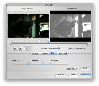 Para ello Bigasoft iPad Video Converter for Mac te ofrece perfiles preconfigurados, que podrás personalizar, así como herramientas para trocear un vídeo, eliminar esquinas o franjas, añadir marcas de agua o mejorar el color e iluminación de la película.
